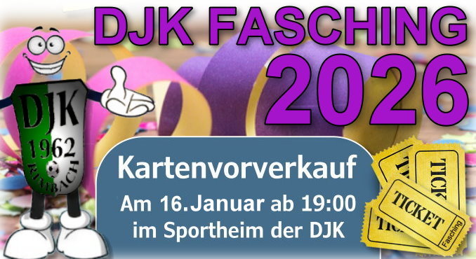 NEWS 26.Januar/24 - Für die am Samstag den 3.Februar stattfinden DJK Faschingssitzung gibt es noch Karten. Sie können unter 09381 2288 weiterhin Karten kaufen.